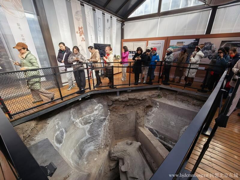 女盟员们首先参观正阳桥遗址。作为北京中轴线上的重要节点,正阳桥遗址近年来经考古发掘,揭露出明代正阳桥桥体、镇水兽等遗存,为研究中轴线历史变迁提供了珍贵实物资料。盟员们认真听取考古工作人员讲解,实地感受古桥沧桑,深刻体悟中轴线作为北京城市脊梁的历史脉络与文化价值。